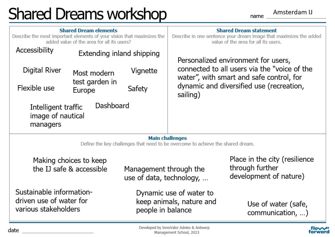 Define the key challenges that need to be overcome to achieve the dream vision. This can be done in the workshop itself, but stakeholders may already have an inventory of the challenges in the area. Bring these together, cluster the challenges where necessary and determine to what extent the solutions to the challenges contribute to realizing the shared dream. This helps to make an initial prioritization on which challenges to focus on and which challenges are interesting for everyone because they contribute to the shared dream.